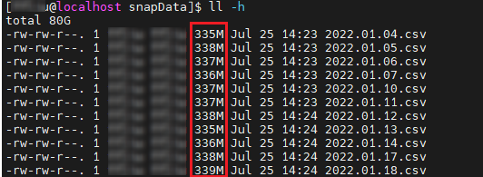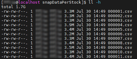 // output: 116,208,4004.2.2 导入一天快照数据(每个股票一个文件)