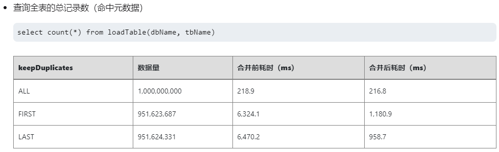 不同去重策略下,查询的性能对比见TSDB 存储引擎详解5.2 节查询全表总记录数(命中元数据)部分。对于 ALL 去重策略,由于查询时无需去重,直接利用 zonemap 提速性能最高。