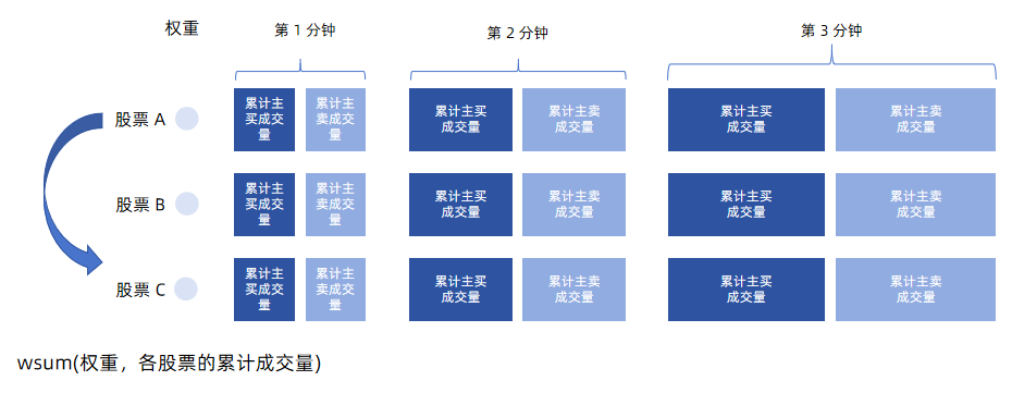 (3)对股票成交量进行加权求和计算交易量 → 横截面引擎