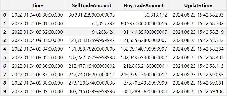 <[cummax(TradeTime), cumsum(SellTradeAmount), cumsum(BuyTradeAmount)]>- 横截面引擎