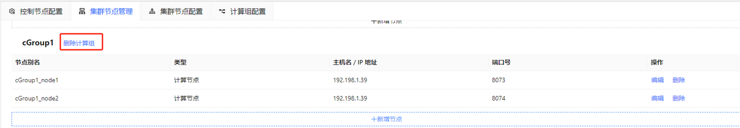 对于已经配置好的计算组,我们同样可以通过 web 的集群管理进行计算节点的增加或删除。