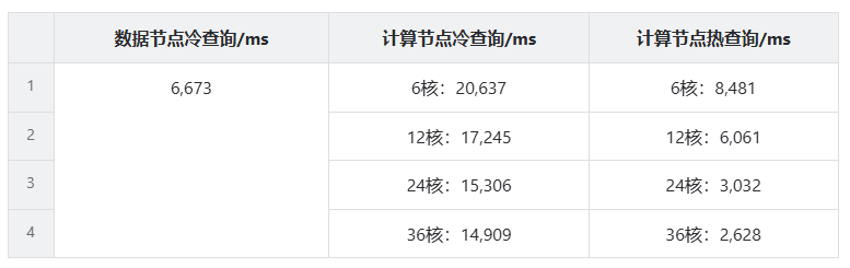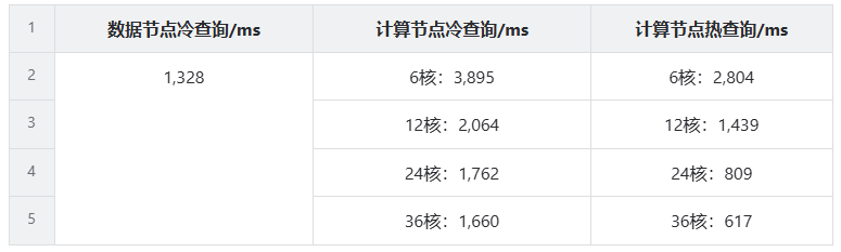 | 数据节点冷查询/ms | 计算节点冷查询/ms | 计算节点热查询/ms |