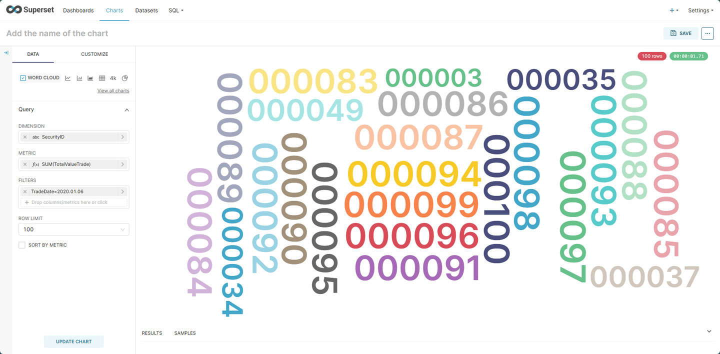 然后,DIMENSION 选择 ”SecurityID“,METRIC 设置为 sum(totalValueTrade), 以成交金额控制词条的大小。