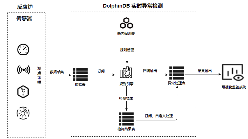 结果输出方面,DolphinDB 可以通过插件主动推送检测结果,或由下游应用系统主动拉取数据。
