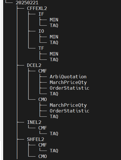 | | |—— SZSEL2注意:以上目录结构为希施玛原始文件目录结构,导入数据的代码根据以上的目录结构开发,用户需确保解压后的目录结构保持一致。