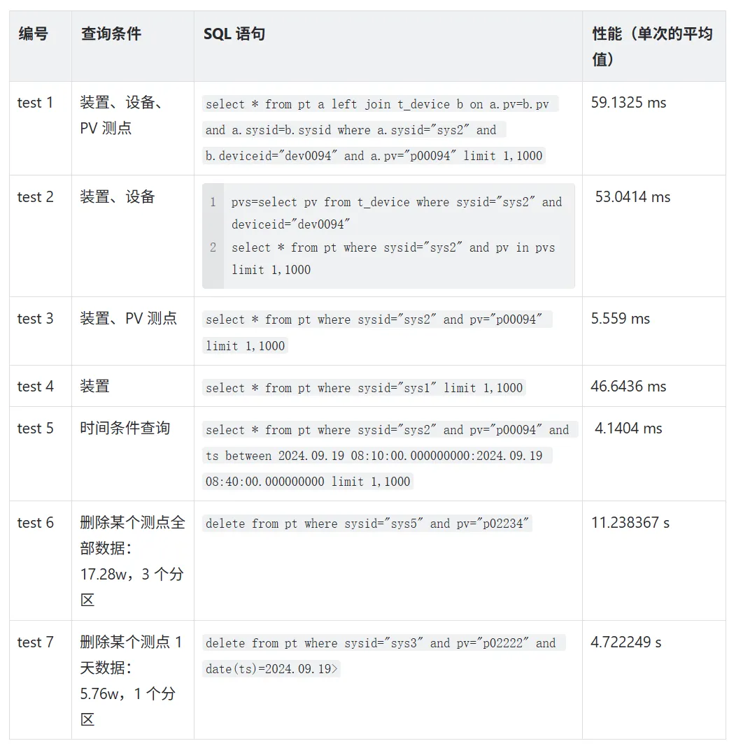 性能测试与结果见下表: